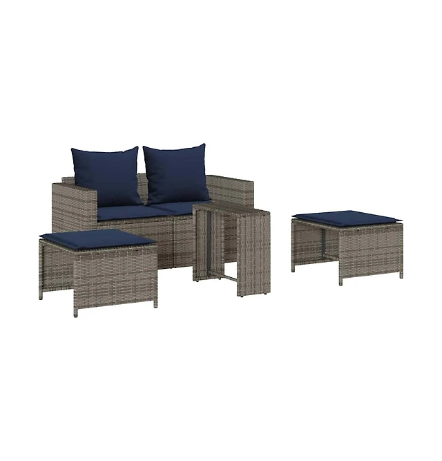 5 Piece Patio Sofa Set with Cushions Stackable Poly Rattan