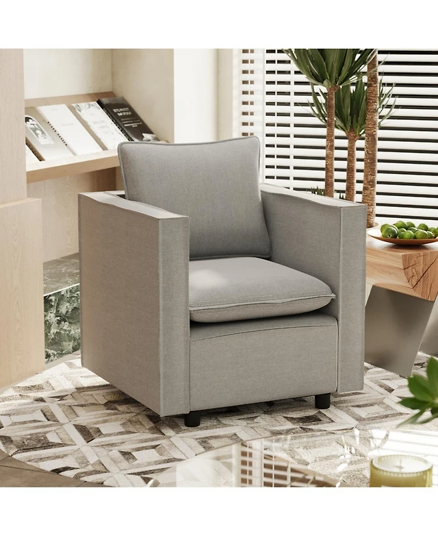 Sugift Fabric Upholstered Sofa Chair with Removable Back and Seat Cushions