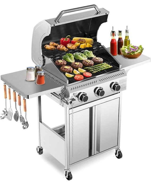 Aecojoy Outdoor Grill Table, 3-Tier Pizza Oven Stand Stainless Steel Bbq Prep Table
