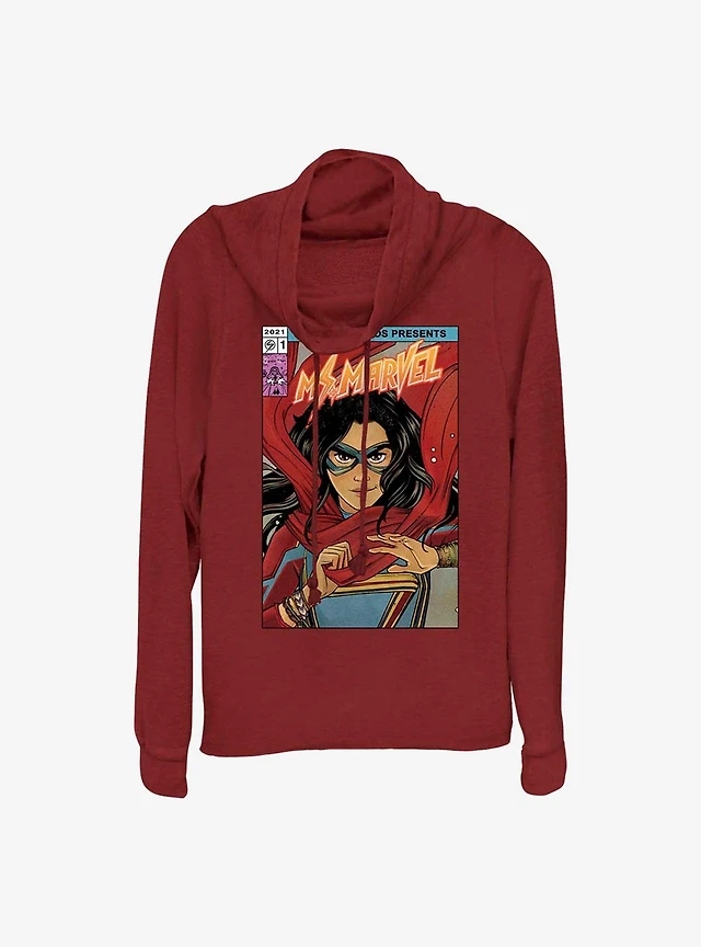 Marvel Ms. Marvel Comic Cover Cowlneck Long-Sleeve Girls Top