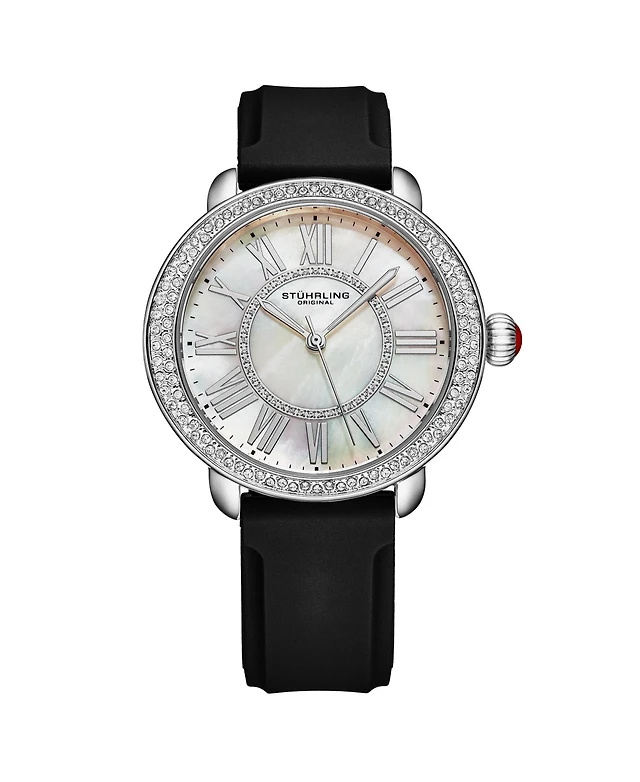 Stuhrling Elegant Women s 40mm Dress Watch – Model 4068, Blue Satin Leather Band, Crystal Accents
