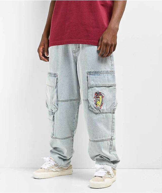 Pacsun Dylan Baggy Jeans Cargo Frayed Light Indigo