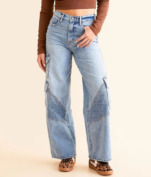 mnml Men's Ultrabaggy Channel Cargo Denim, Oversized Fit, Multi-Pocket Design, Washed Finish, Adjustable Waist, Streetwear Jeans