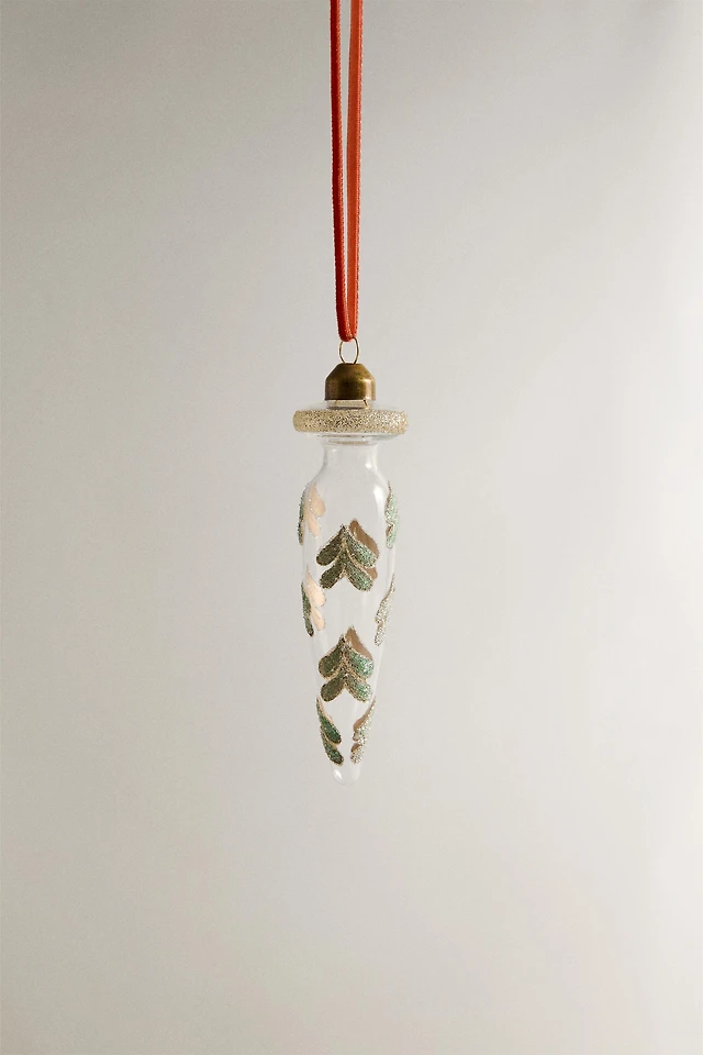 ELONGATED GLITTERY LEAF CHRISTMAS TREE ORNAMENT