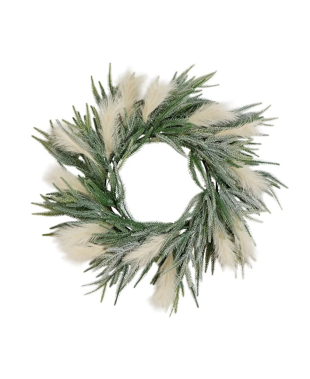 Nearly Natural 24" Artificial Balsam Fir Pine and Pampas Wreath Led Lights