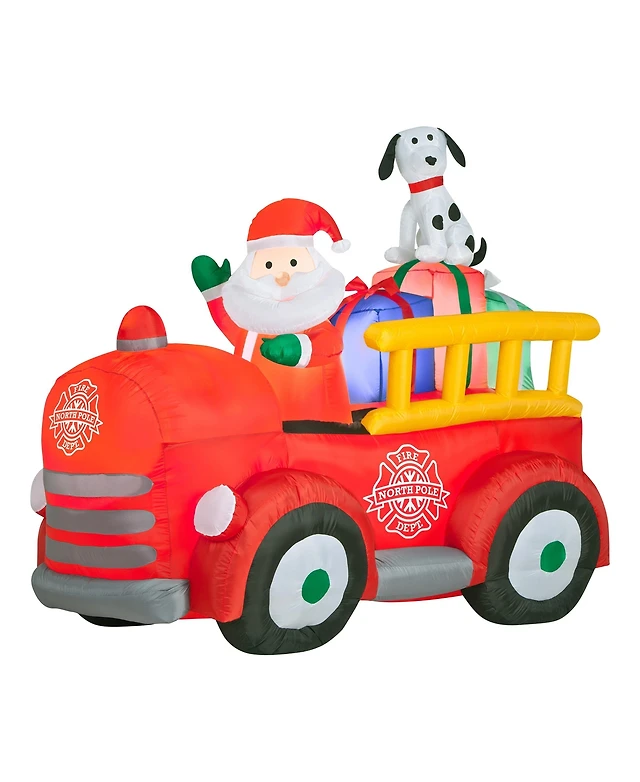 National Tree Company 6' Inflatable Santa in Vintage-Like Fire truck