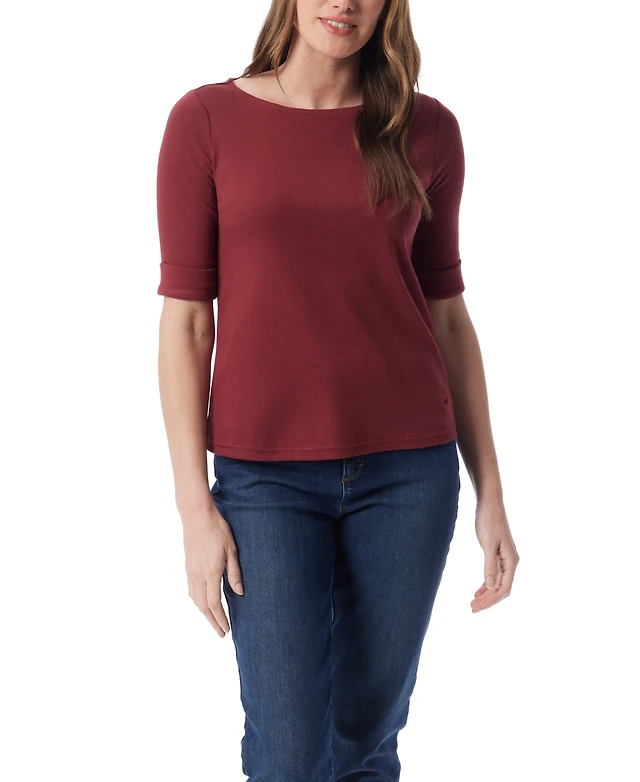 Lauren Ralph Women's Geo-Print Stretch Cotton Boatneck Tee