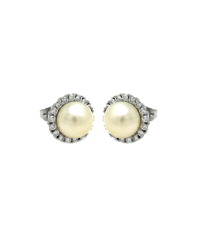 Sterling Silver Cultured Freshwater Pearl (10mm) and Crystal Halo Earrings