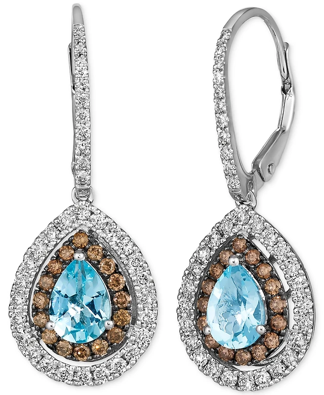 Le Vian Chocolatier Sea Blue Aquamarine (1 ct. t.w.) & Diamond (1 ct. t.w.) Drop Earrings in 14k White Gold