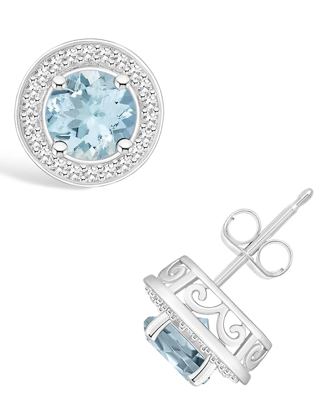 Lab Grown Aquamarine (1-3/5 ct. t.w.) & Created White Sapphire (1/5 Stud Earrings 10k Gold (Available Additional Gemstones)