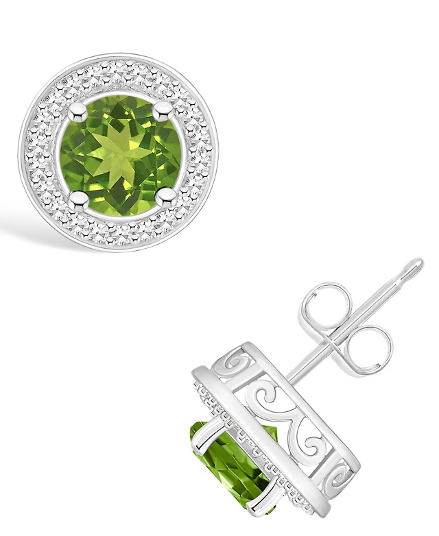 Peridot (2-1/5 ct. t.w.) and Lab Grown Sapphire (1/4 ct. t.w.) Halo Studs in 10K White Gold