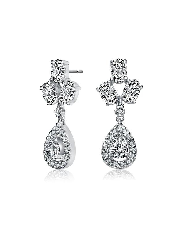 Sterling Silver white Gold Plated Pear Drop Cubic Zirconia Cluster Pear Leaver Back Earrings