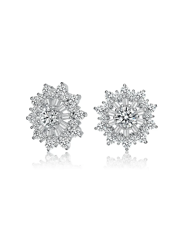 Gv Sterling Silver White Gold Balls with Clear Round Cubic Zirconia Stud Earrings