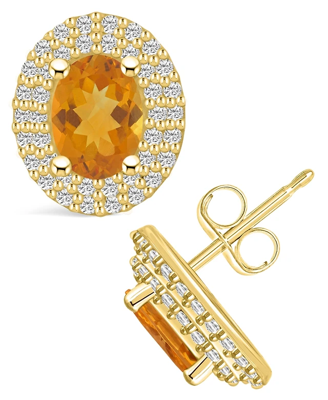Citrine (1-1/2 ct. t.w.) & Diamond (1/10 ct. t.w.) Halo Stud Earrings in 18k Gold-Plated Sterling Silver