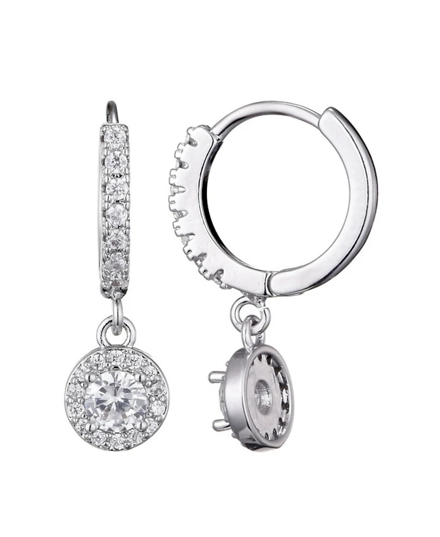 Clear Cubic Zirconia Halo Drop U-Hoop Earrings