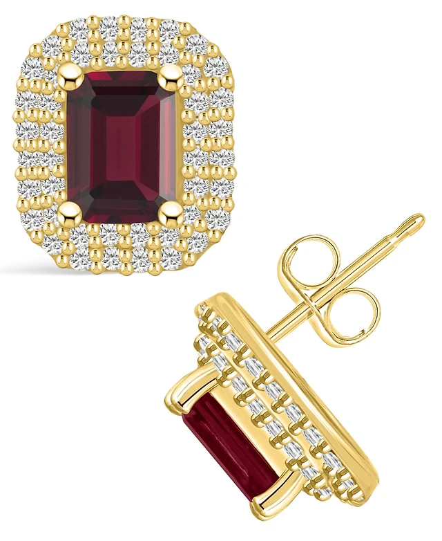 Emerald (1 ct. t.w.) & White Topaz (2 ct. t.w.) Baguette Halo Stud Earrings in 14k Gold-Plated Sterling Silver (Also in Ruby & Sapphire)
