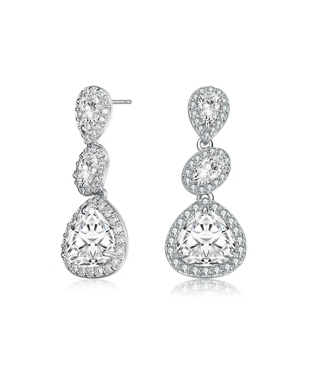 Sterling Silver with Rhodium Plated Clear Pear and Round Cubic Zirconia Halo with Open Pear Drop Earrings