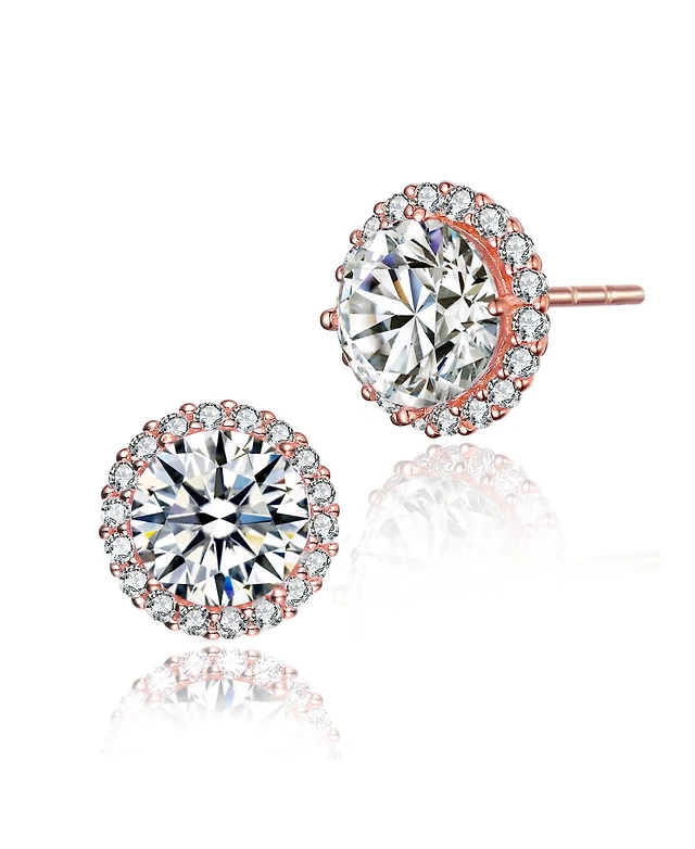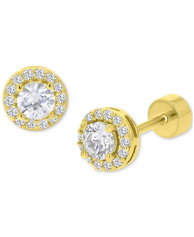 Sterling Silver Clear Round Cubic Zirconia with Pronged Halo Small Zirconias Button Style Earrings