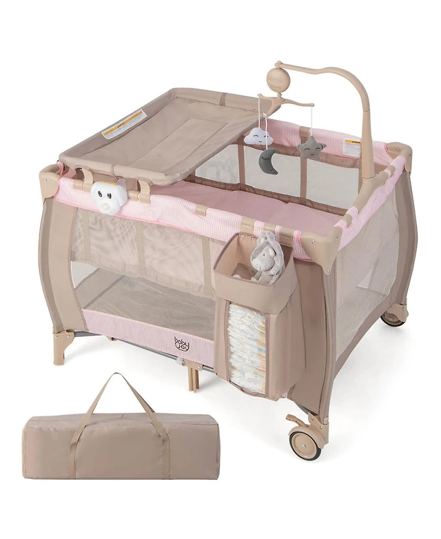 Gymax Portable Baby Playard Nursery Center Crib Bassinet w/ Hanging Toys & Music Box