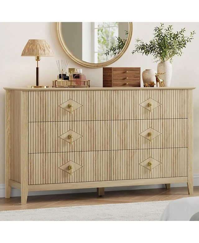 gaomon Fluted Dresser for Bedroom with 6 Drawers, Modern Chest of Wooden Bedroom Chest with Metal Handle