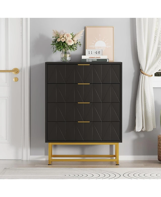 gaomon 4 Drawer Dresser for Bedroom, Modern Chest with Gold Metal Handles, Storage Living Room, Hallway, Entryway