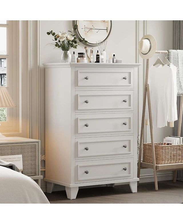 gaomon 5 Drawers Dresser for Bedroom, White Dresser with Wide Drawers, Wood Chest of Drawers