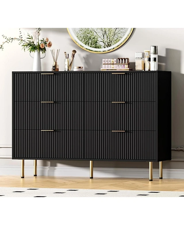 gaomon 54.7 Inch Fluted 6-Drawer Modern Wood Dresser, Chest with Metal Legs & Handles, Anti-Tipping, Bedroom, Hallway