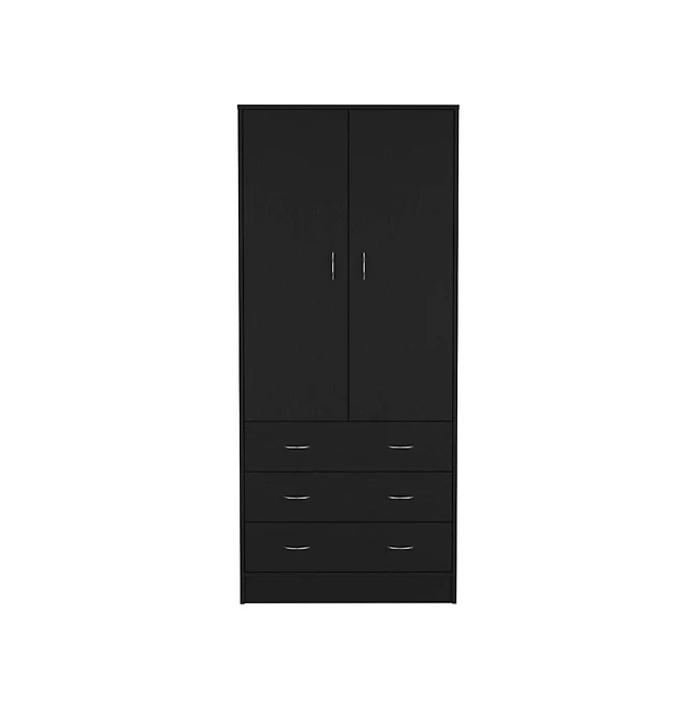 flynama Ramey Armoire Bedroom Storage Organizer with Hanging Rod Three Drawers and Stylish Hardware