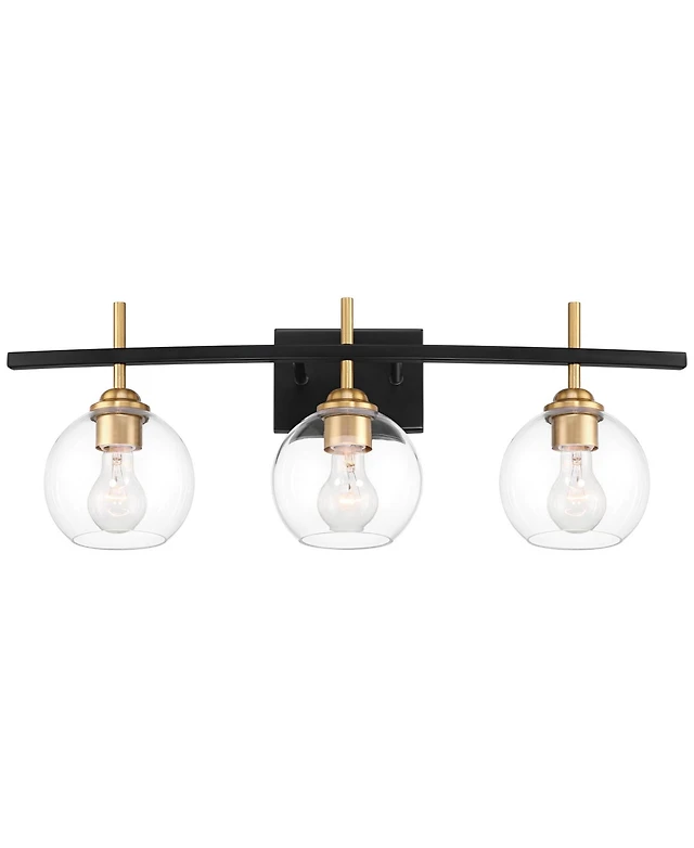 Stiffel Mid Century Modern Wall Light Sconce Black Brass Hardwired 5 1/2" Fixture Hardwired Clear Glass Shade for Bedroom Bathroom