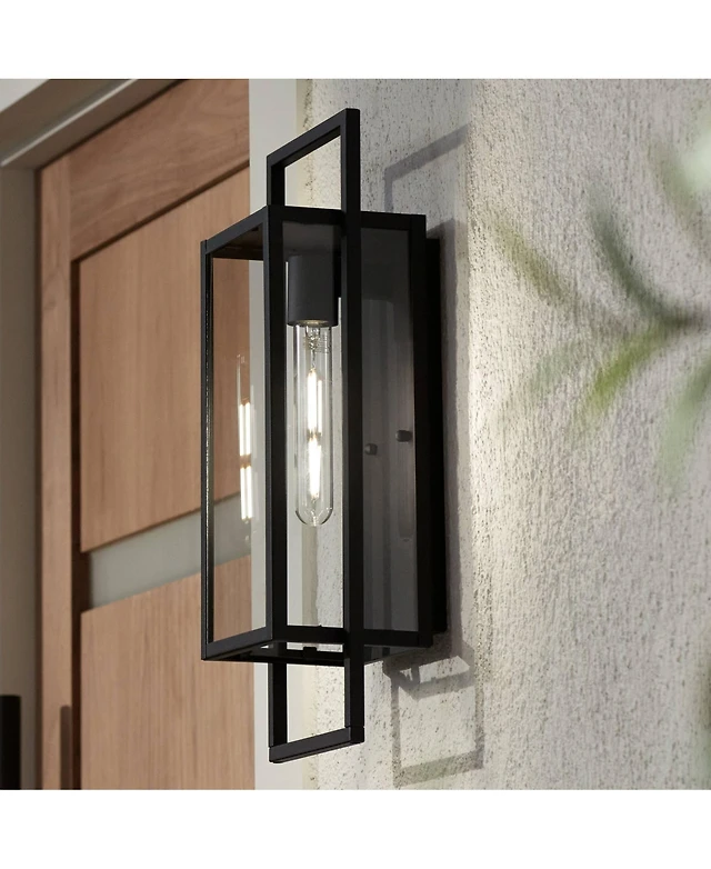 John Timberland Woodland Park Outdoor Wall Light Fixture Black Dusk To Dawn 15" Clear Glass for Post Exterior Barn Deck House Porch Yard Patio Ho