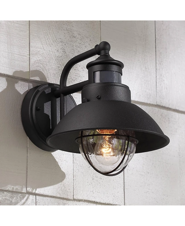 Stan Rustic Outdoor Wall Light Fixture Wood Finish Black 15 1/2" Pleated Glass Motion Sensor Dusk To Dawn Decor for Exterior House Porch Patio Outside
