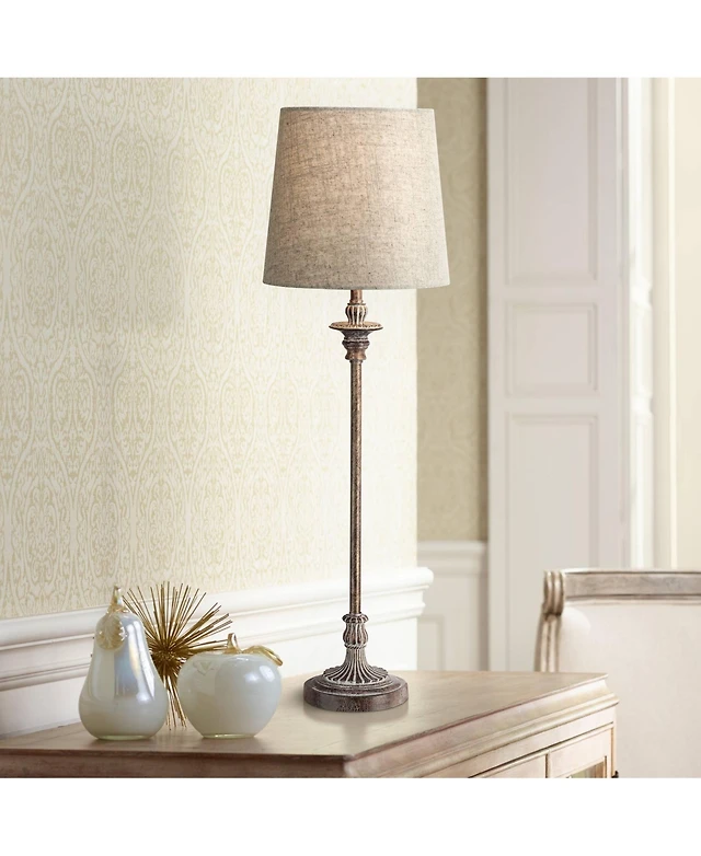 Rustic Farmhouse Table Lamp 33" Tall Dark Bronze Brown Metal Off White Burlap Fabric Drum Shade for Bedroom Living Room House Bedside Nightstand Home