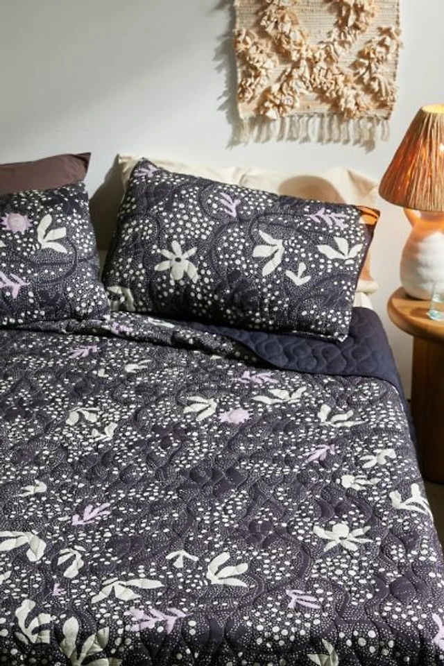 Linery & Co. Cotton Stitched Reversible Floral 3 Piece Quilt and Sham Set