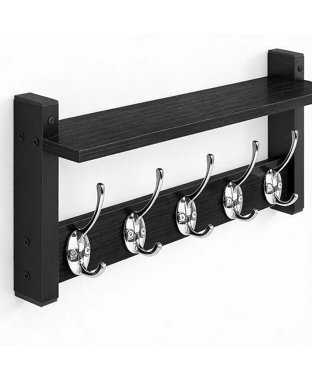 Yigii Black Oak Finish Coat Rack with Hooks and Shelf
