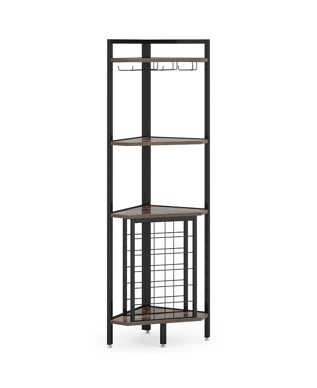 Casafield 3-Tier Floor Stand Rack with Hanging Storage Baskets, Walnut/Espresso - Wood Tower Organizer for Bathroom, Kitchen, Laundry, Living Room