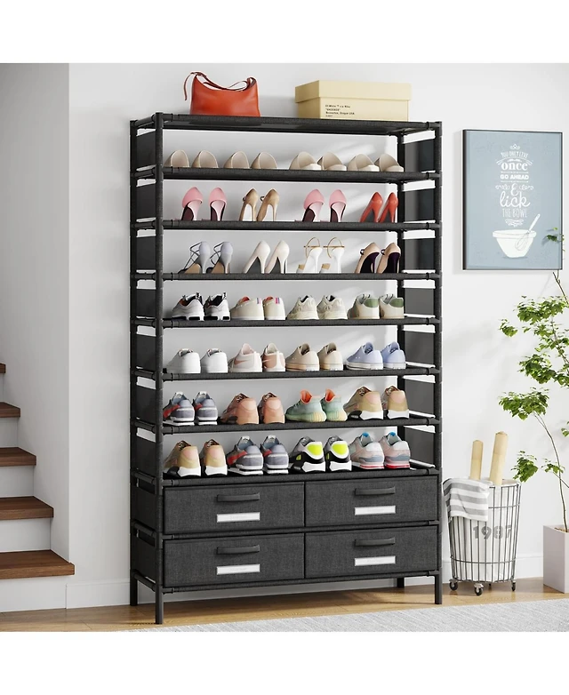 Tribesigns 10-Tier Shoe Storage Organizer with Cover, Black Large Shoe Rack for Closet, Entryway, or Bedroom, 50-Pair Shoe Stand, Non-Woven Shoe Shelf