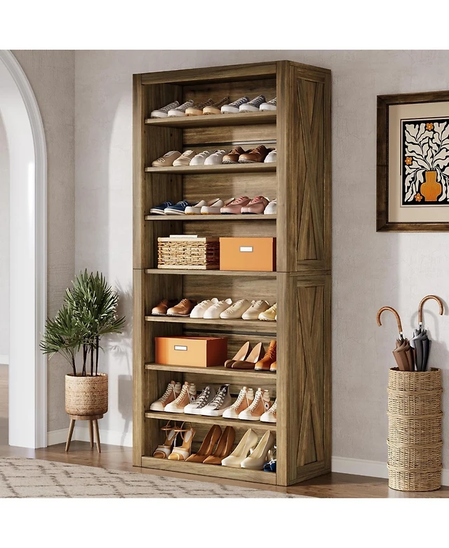 gaomon Shoe Storage Cabinet, Freestanding Tall Closet Shoe Organizer with Cubbies for 33 Pairs, Wooden Shoe Rack for Closet, Entryway, Living Room