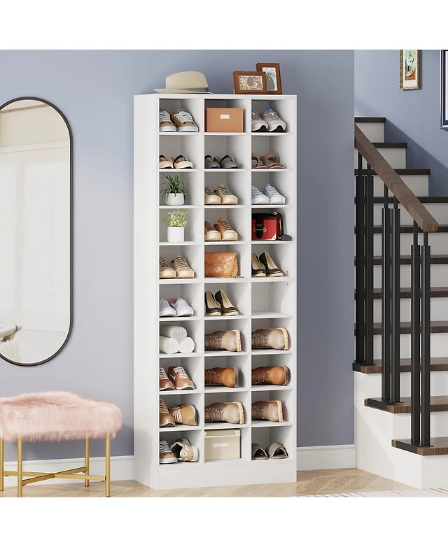 Sourcing Solutions Arched 34" Solid Wood 6 Cubby Entryway Shoe Rack Storage Organizer Cabinet