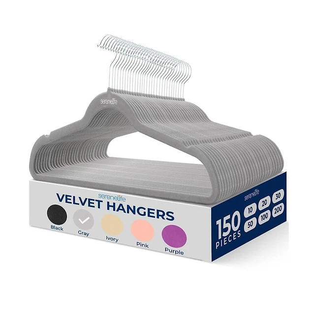 SereneLife 50-Piece Velvet Shirt Hangers - Non-Slip, Sturdy, Space Saving and Heavy Duty Coat Set with 360° Swivel Hook for Clothes (Grey