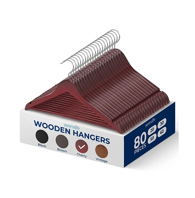 SereneLife Pack Wooden Coat Hangers – Durable Suit Hangers with 360° Swivel Hook & Notches – Slim Design for Shirts, Jackets