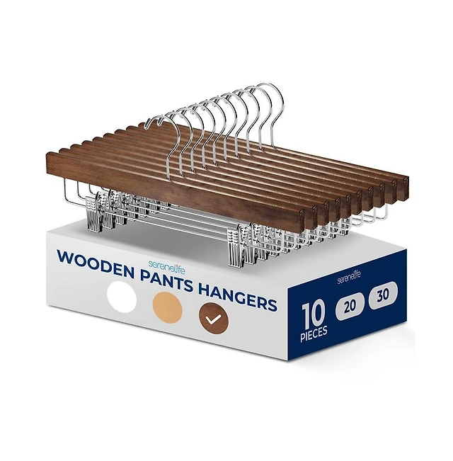 Serenelife 30 Pcs. Premium Wooden Pants Hangers Heavy Duty Hanger Set With Chrome 360 Xb0 Swivel Hook Retro