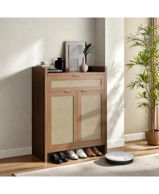 Casainc Rattan 2 Door Shoe Cabinet with 1 Drawer