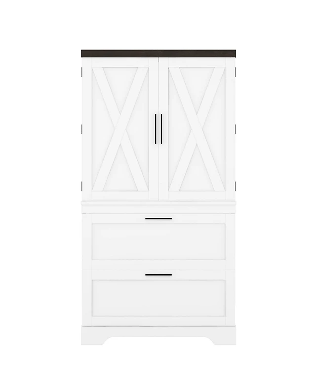Ironck Shoe Storage Cabinet with 2 Flip Drawers & Barn Door, White/Black
