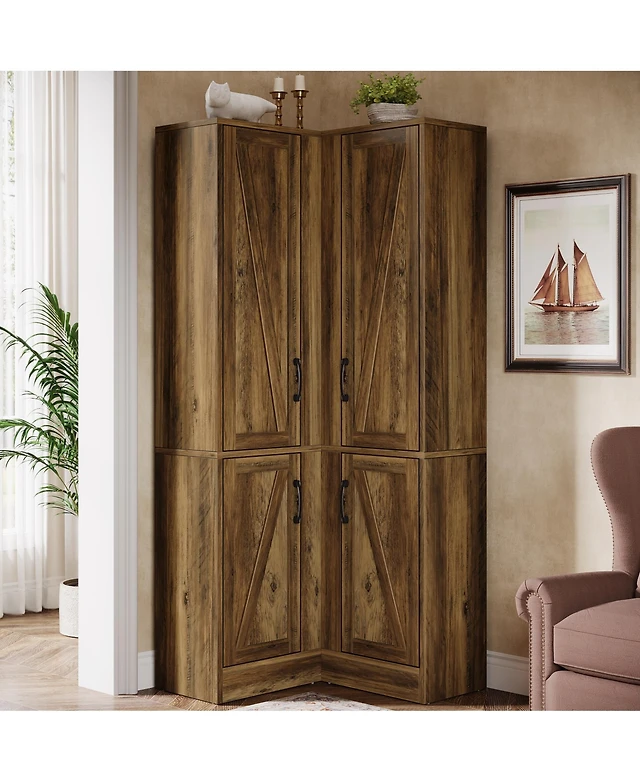 Slickblue Bedroom Storage Cabinet with Louver Doors, Hanging Rod, and Wood Finish