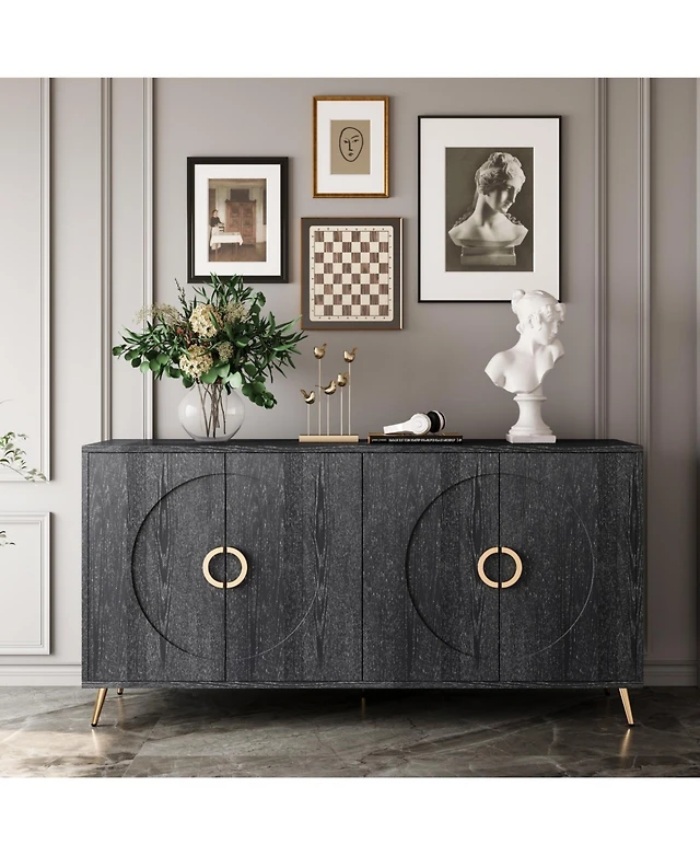 62.20" Elegant and Functional 4-Door Rattan Decorative Storage Cabinet, for Bedroom, Living Room, Office, Easy Assembly, Black(Same Sku:W757P1749
