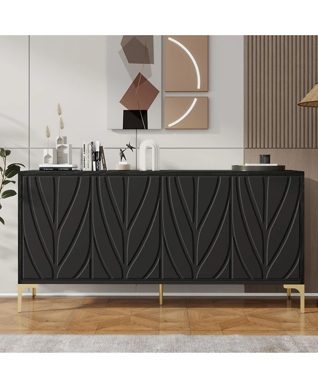 Casainc Retro Storage Cabinet Sideboard door with Circular Groove Design Round Metal Door Handle