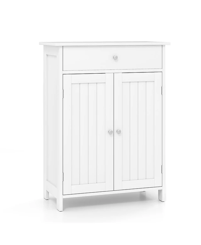 Gymax Bathroom Floor Storage Cabinet Side Table Adjustable Shelf Organize Freestanding