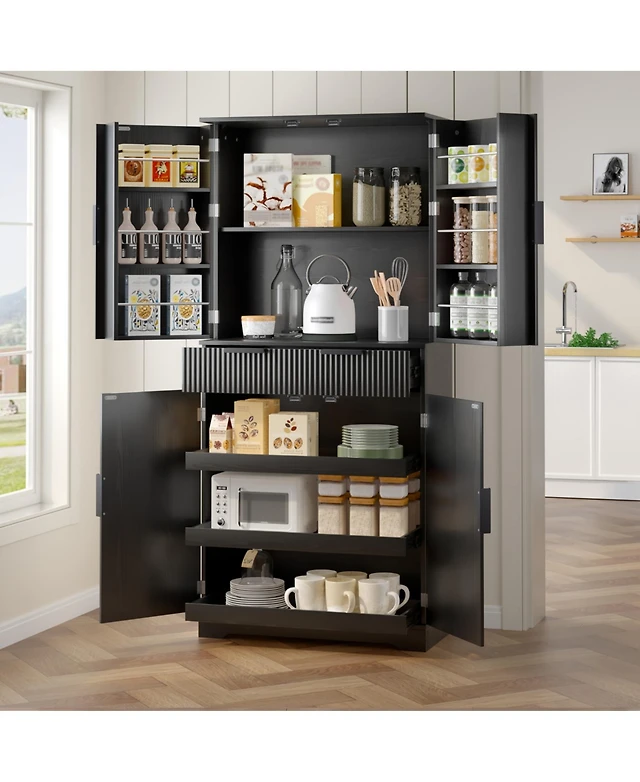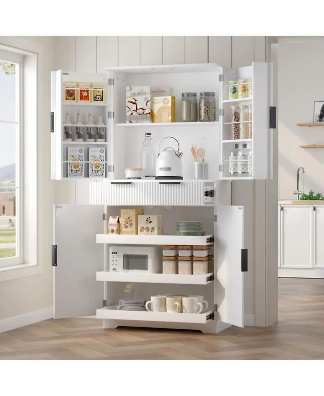 Streamdale 72" Corner Pantry Storage Cabinet 4-Tier, 8 Doors, Adjustable Shelves