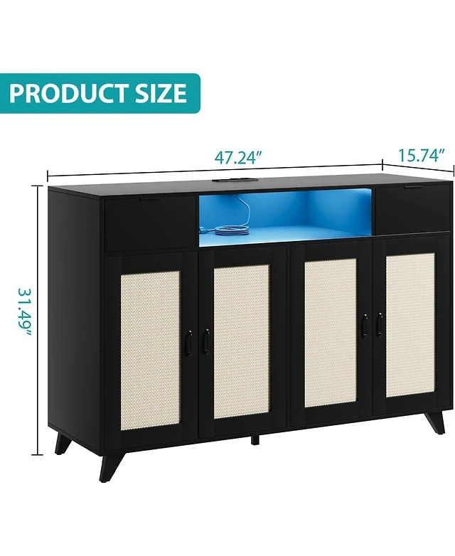 Gouun Rattan Buffet Cabinet with 2 Doors and 2 Cubbies
