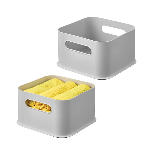 iDesign Storage Bin with Handles for Kitchen, Bathroom, or Home Office, Set of 2, Clear, Made in Usa